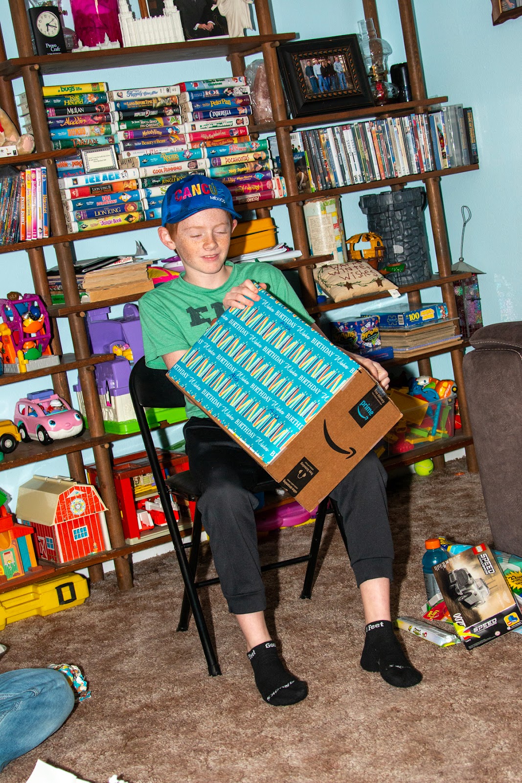 We had a birthday combined party forAlex, Scott and Ben.Ben gave Alex a present inside of a totefilled with Gabe's old stuffed toys.The other children ended up with giftsalso because of it.